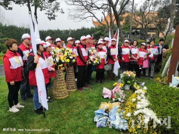 3月21日,春分节气,合肥大蜀山文化陵园里洁白的玉兰花尽情绽放,青葱的松柏抽出新芽,如茵的绿草铺满园地,一早就有许多人来到这里,手捧鲜花,庄严肃穆地走向绿草丛中一尊并不高大的红色黄岗岩纪念碑。其中,一队抬着花篮、打着队旗、身着志愿者马甲的队伍最为引入注目。