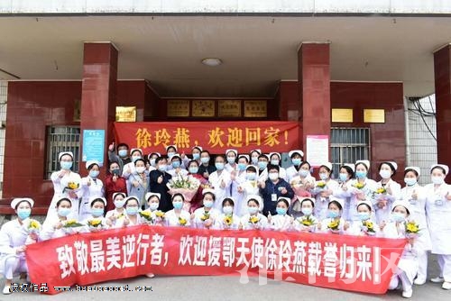 4月10日,当徐玲燕回到阔别2个月的家乡时,她的耳边还萦绕着2月9日跟随安徽省第三批援鄂抗疫医疗队出征武汉时的铮铮誓言。重返培养自己成长的市妇幼保健院时,迎接徐玲燕的是鲜花铺就的大道,同事们夹道欢迎的掌声和院领导赞许的话语:“平安回家就好!”泪水一次次地打湿她的双眼,徐玲燕没有想到,医院给予了她如此高规格的欢迎仪式,在花团锦簇中,她哽咽着说不出一句话来。就连很多来院看病的市民也纷纷举起手机,记录下这位抗“疫”英雄的风采。“看到大家为我举行的欢迎仪式,我感到无比激动,感谢大家的辛苦付出。我觉得这两个月在武汉的工作都是值得的,如果以后国家需要,医院需要,我依然会毫不犹豫,背起行囊即刻出发,为医院争光添彩。”在同事的簇拥下,徐玲燕早已激动地泣不成声。在产科同事刘轶的眼中,徐玲燕给人的感觉就是踏实、务实、爱学习,“这次出征,她是我们心中的英雄,我们为她点赞。”刘轶说,出征的时候是医院的同事帮徐玲燕收拾的行囊,回来时也是同事像家人一样迎接她,而自己和她的感情已经远远超出了同事之间的情谊,“我们是同事,是姐妹,更是家人。我们也一直在盼她回来,看到她的那一刻非常开心激动。”刘轶表示,这次请战大家都很积极,徐玲燕作为代表去支援武汉,自己同样感到很放心,很自豪。