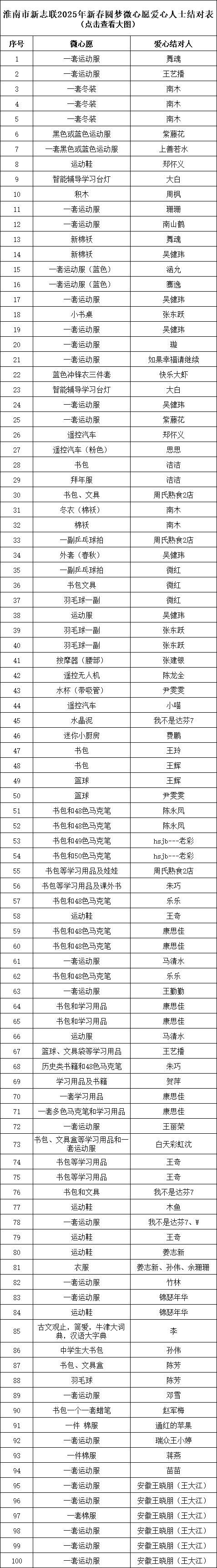 2025年新春圆梦微心愿结对表及现场发放礼物活动志愿者名单: