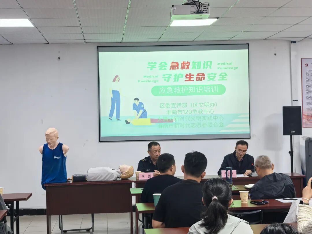 为提升大众应急救护能力,普及急救知识,9月23日下午,淮南市新时代志愿者联合会与大通区委宣传部(区文明办)、淮南市120急救中心、大通区新时代文明实践中心联合开展了一场“学会急救知识,守护生命安全”应急救护知识科普活动。
