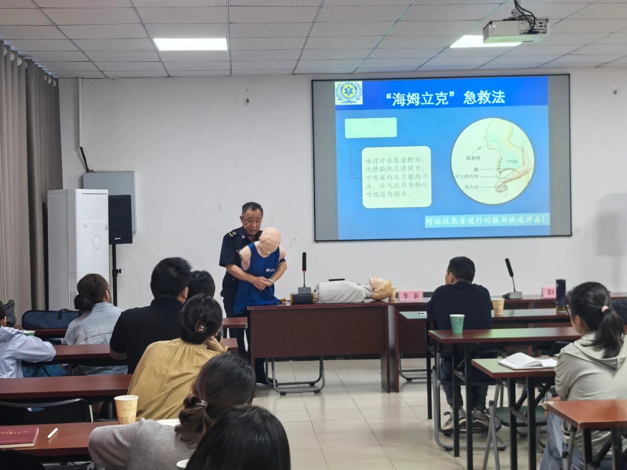 — “海姆立克”急救法:针对呼吸道异物梗阻,李老师结合模型演示,清晰讲解原理与操作——通过冲击腹部提升横膈肌,让气流排出异物,从站位到特殊情况的应对,教会大家“救命技能”。