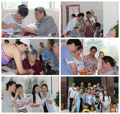 7、2014年9月15日与《今晚800》志愿者们一同前往望峰岗寿春公寓,看望那里的老年人,为爷爷奶奶们带去了群友制作的月饼,并表演了歌舞节目。